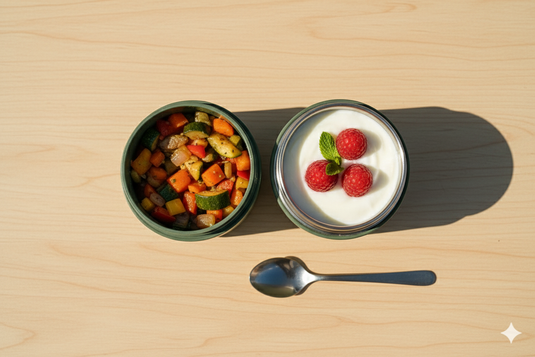 Lunch now, dinner later. Two layers, perfectly separate because life happens in chapters